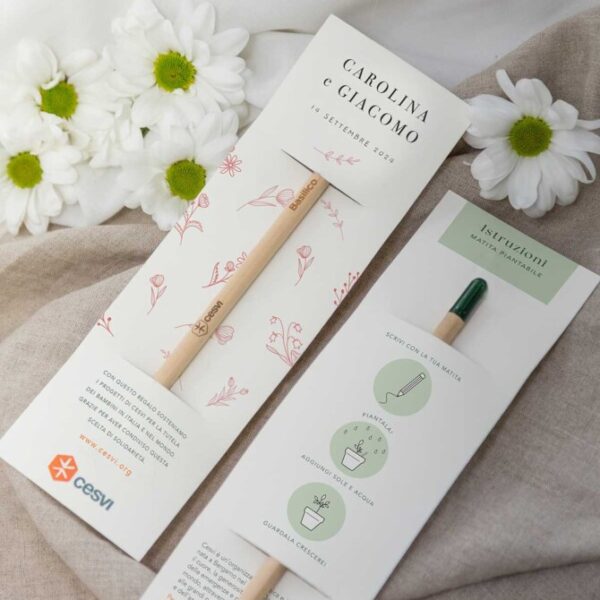 Un dono gradito e utile per i tuoi invitati che, una volta che avranno usato la matita, grazie ai semi contenuti vicino alla punta potranno piantarla e far nascere una piantina.
