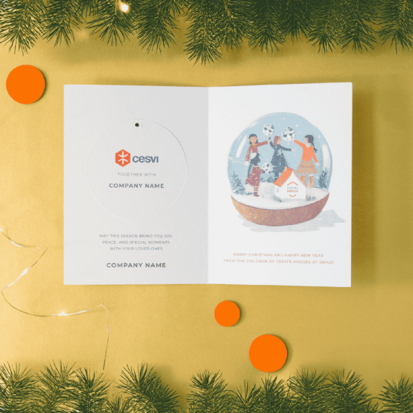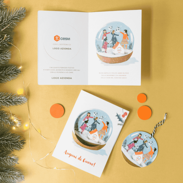 Quest’anno, trasforma i tuoi auguri aziendali in un gesto di profondo impatto con il biglietto aziendale natalizio di CESVI! È il modo più significativo per inviare gli auguri aziendali e sostenere i nostri progetti in Italia e nel mondo, raccontando a clienti e dipendenti l’impegno sociale della tua azienda. L’intaglio diventa una decorazione per l’albero di Natale. Fai la differenza con i biglietti di Natale aziendali!