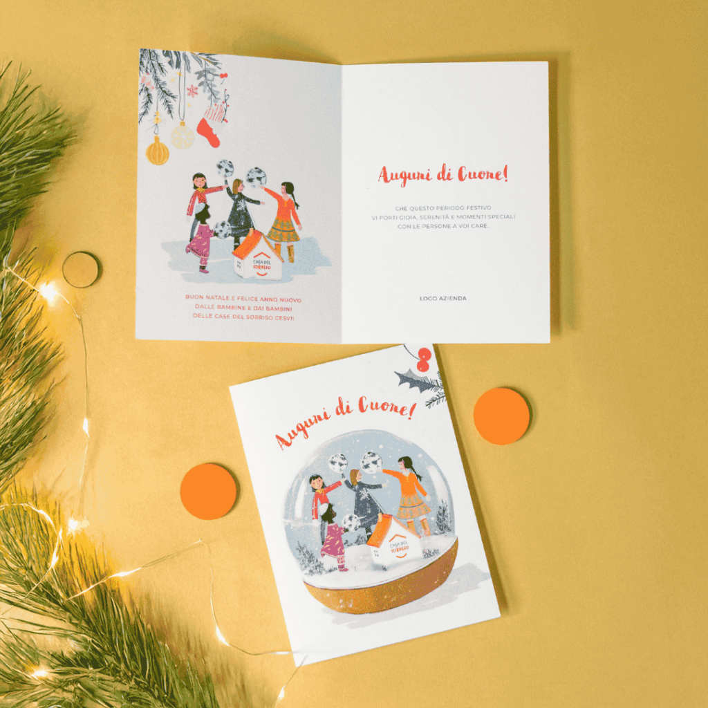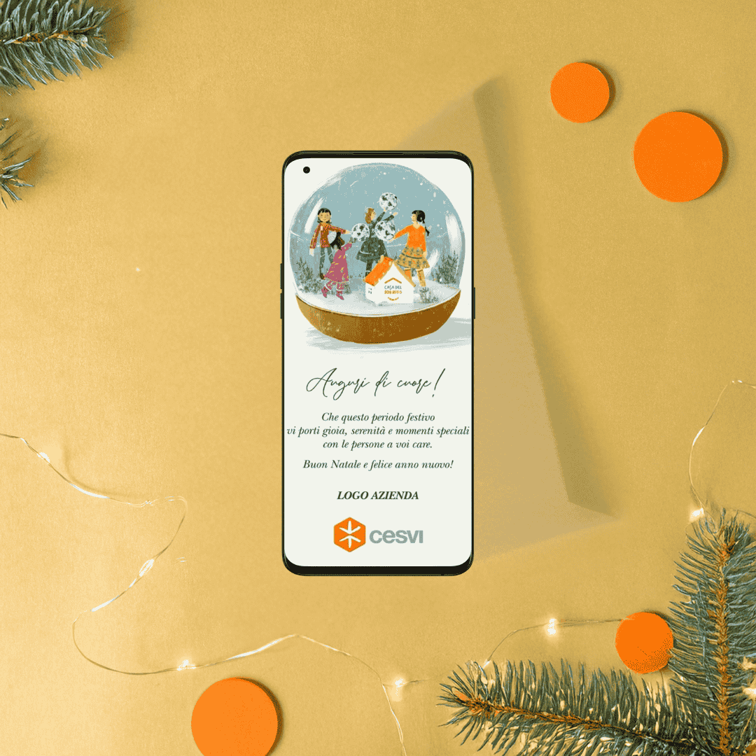 Un regalo aziendale solidale, attraverso cui sostenere l’impegno di CESVI in Italia e nel mondo, senza perdere di vista la sostenibilità ambientale, grazie al ridotto impatto ambientale di un prodotto digitale. Il biglietto è personalizzabile con logo aziendale e con un messaggio di auguri.